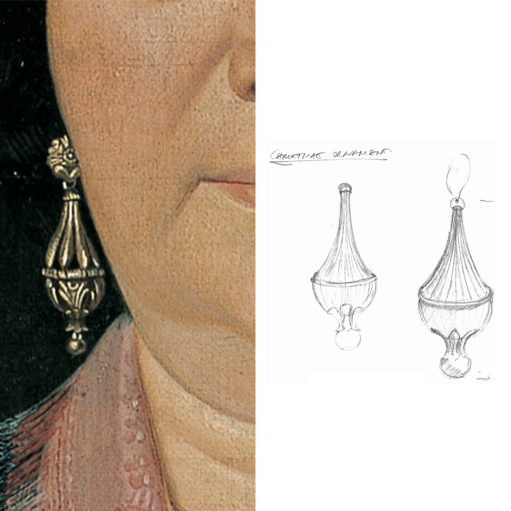 Handmade ceramic ornament inspired by the earring in the artwork Portrait of a Noblewoman from an Island (detail) by Francesco Pige (1822-1862), Greek Collection